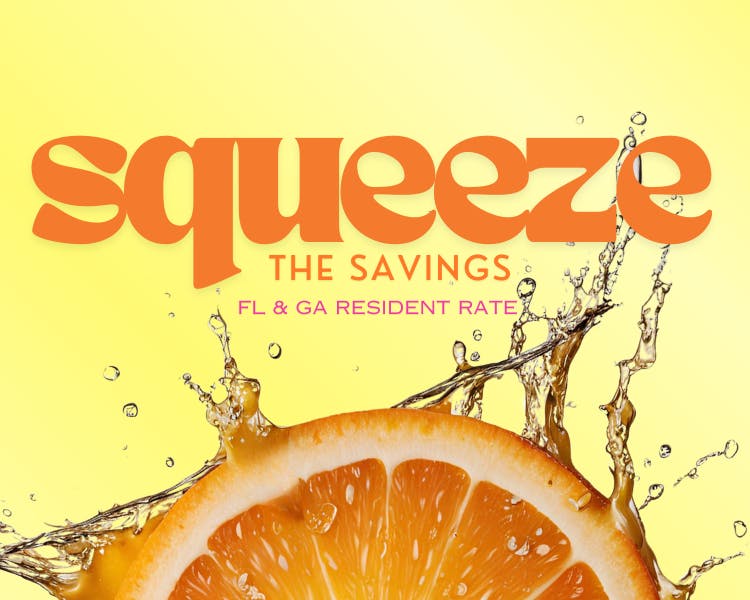 All Florida & Georgia Residents can save up to 20% off when you book today! Take advantage of this year-round sunshine state steal. Valid ID is required at the time of check- in.